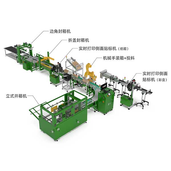 3. 封箱:裝箱完成后,設(shè)備會(huì)自動(dòng)對(duì)紙箱的上蓋進(jìn)行封口,通常使用膠帶或熱熔膠,確保紙箱封閉嚴(yán)密。